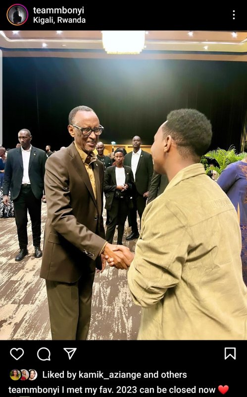 On Saturday, December 30, 2023, at the end of the year 2023 event, His Excellency President Paul Kagame and his wife Jeannette Kagame hosted guests including Rwandans and their friends, at the Kigali Convention Center, where the gospel Singer Israel Mbonyi appeared to greet the President Paul Kagame.