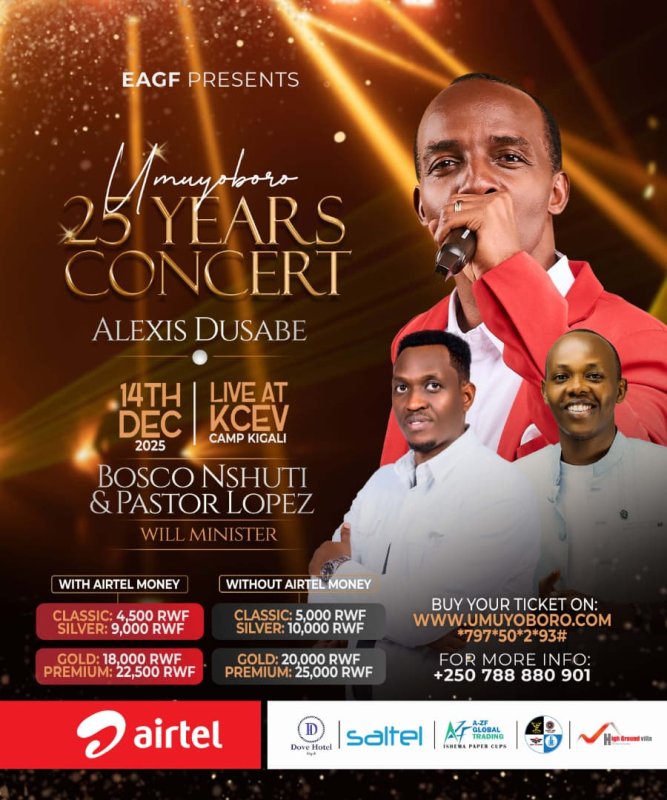 Bosco Nshuti, wamamaye mu ndirimbo zirimo Umutima, Ibyo ntunze n’izindi, yagize ati: “Shalom Shalom, ngufitiye inkuru nziza. Umuyoboro 25 Years twateguriwe n’umuramyi Alexis Dusabe tariki ya 14/12 Camp Kigali.