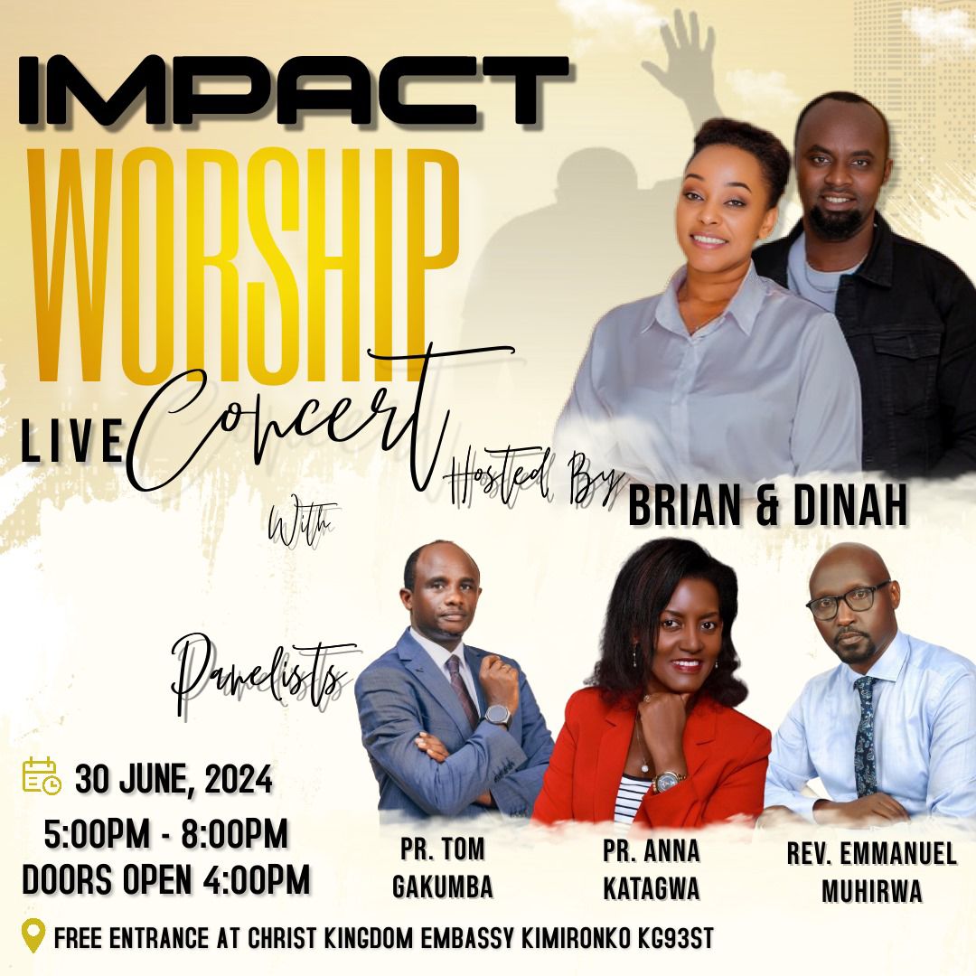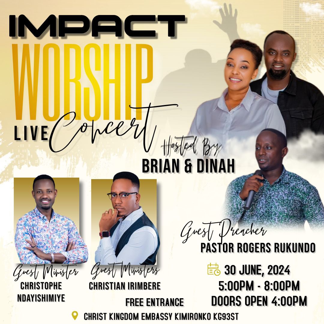 Bizimungu Brian [Brian Blessed] and his wife Dinah Uwera called this concert "Impact Worship Live Concert", which will take place on June 30, 2024, at Christ Kingdom Embassy Kimironko, where they will sing some of their popular songs such as the song "Dutarame" Brian Blessed collaborated with Jules Sentore and Alpha Rwirangira, and those of his wife Dinah Uwera including "Inshuti," "Says The Lord" and others.