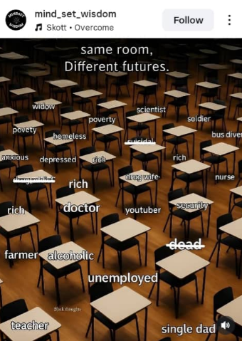Ifoto yasangijwe ku rubuga rwa Instagram na mind_set_wisdom ku wa 21 Nyakanga 2025 yakomeje kuvugisha benshi, kubera ubutumwa bukomeye itanga ku buzima butagenze kimwe kuri bamwe bahuriye mu ishuri rimwe.