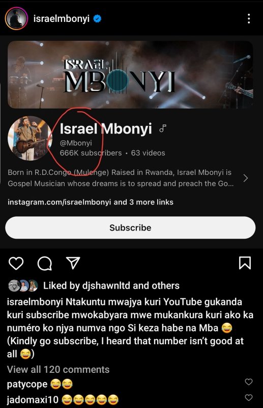 Nyuma y’uko Israel Mbonyi ashyize ifoto kuri konti konti ye ya Instagram, Twitter ndetse na Facebook igaragaza ko yujuje abamukurikira (subscribers) ibihumbi 666 (666k), yagize icyo asaba abakunzi b’indirimbo ze.