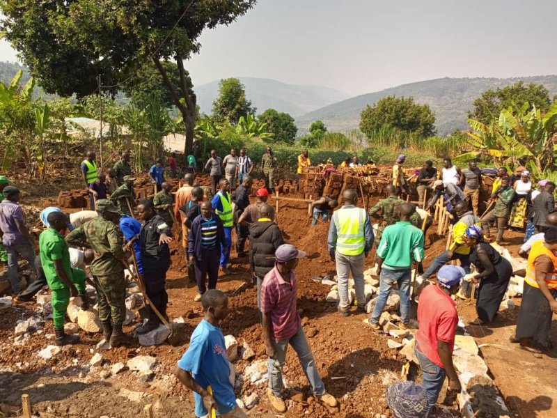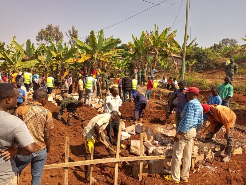 Korali Gosheni ibarizwa mu itorero rya ADEPR Muhoza, Paroisse ya Muhoza, yafatanyije na Korali Rangurura ya ADEPR Gihugwe mu muganda rusange bakoranye n’abatuye umurenge wa Jari.