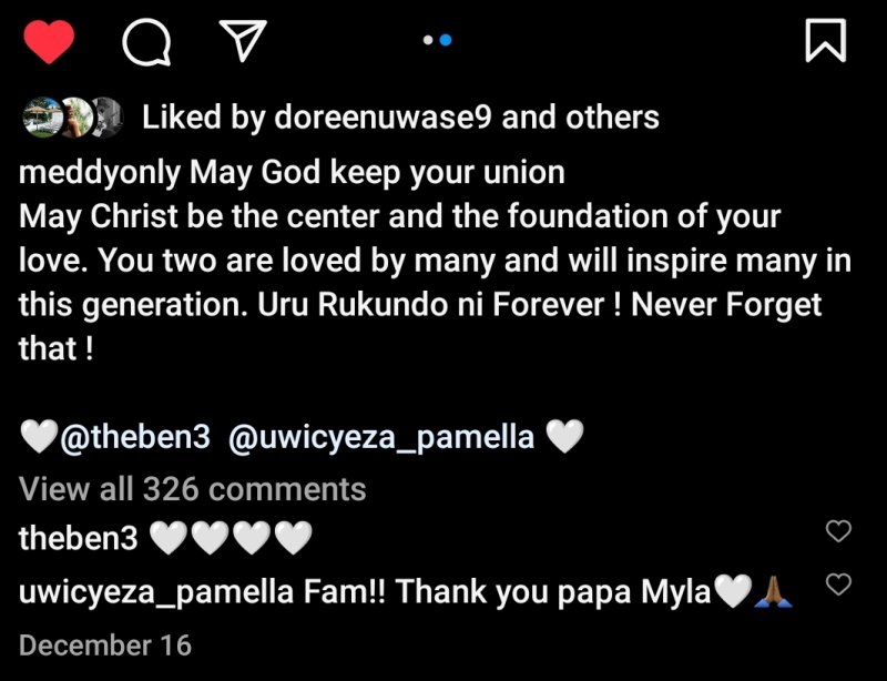Ku rundi ruhande, nubwo Meddy n’umuryango we batatashye ubu bukwe, Umunyamabanga wa Leta Ushinzwe Ubutwererane muri Minisiteri y’Ububanyi n’Amahanga, Gen (Rtd) James Kabarebe, yari umwe mu bari mu birori by’ubukwe bwabo. Ni umugisha ukomeye mu muryango wa The Ben na Pamella gutahirwa ubukwe n’uyu munyacyubahiro.