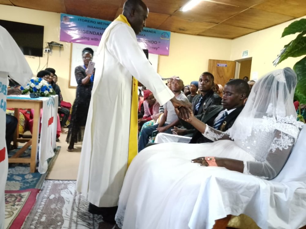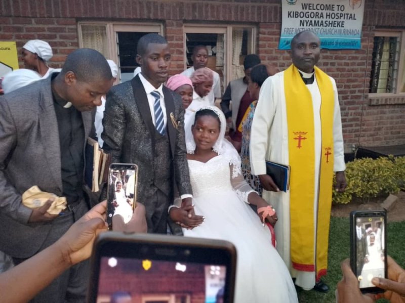 Nyirandagijimana Bonifrid na Niyitanga Pacifique bo mu Karere ka Nyamasheke basezeraniye mu Bitaro bya Kibogora nyuma y’uko umukobwa akoze impanuka ari kumwe n’abari bamuherekeje berekeza ku rusengero, igahitana abantu babiri barimo na se.