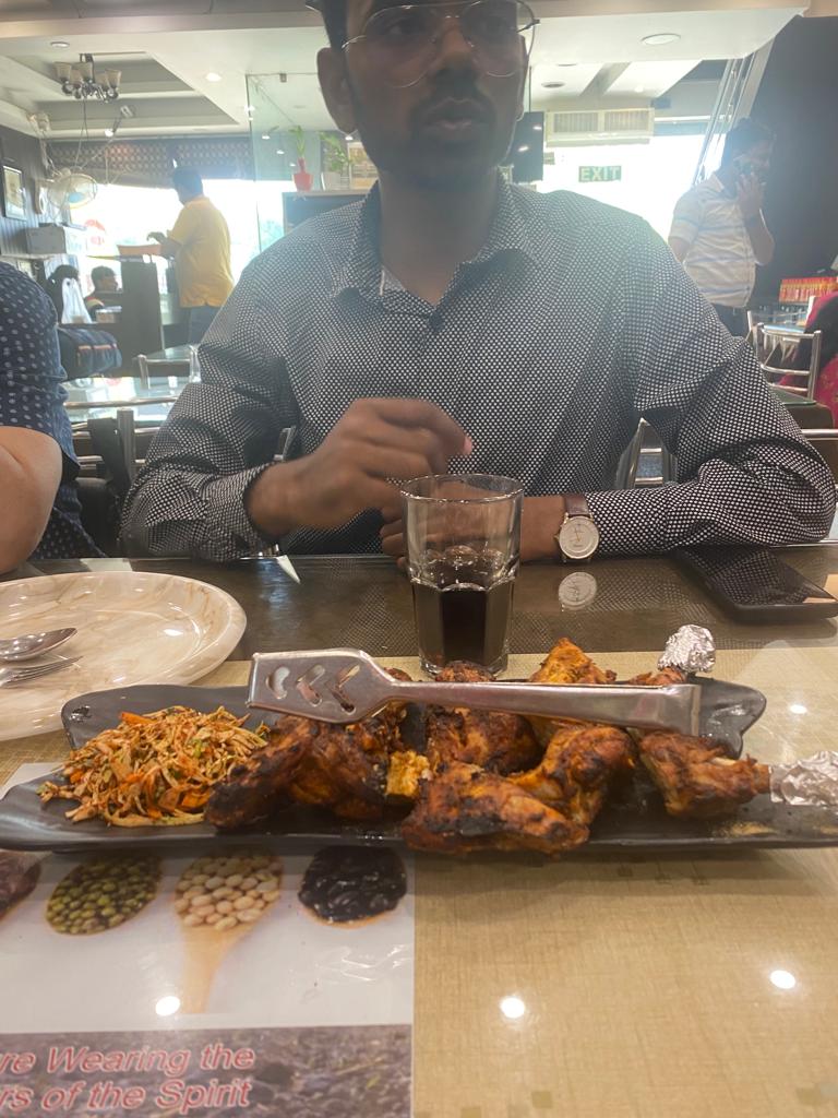 Yishimiye amafunguro yakirijwe mu Buhinde, gusa mu rwenya rwinshi yavuze ko urusenda rwari rumukozeho. Yanditse kuri Whatsapp Status ye ati "Indian’s food is too spicy. Urusenda ruranyishe hano mu Buhinde".