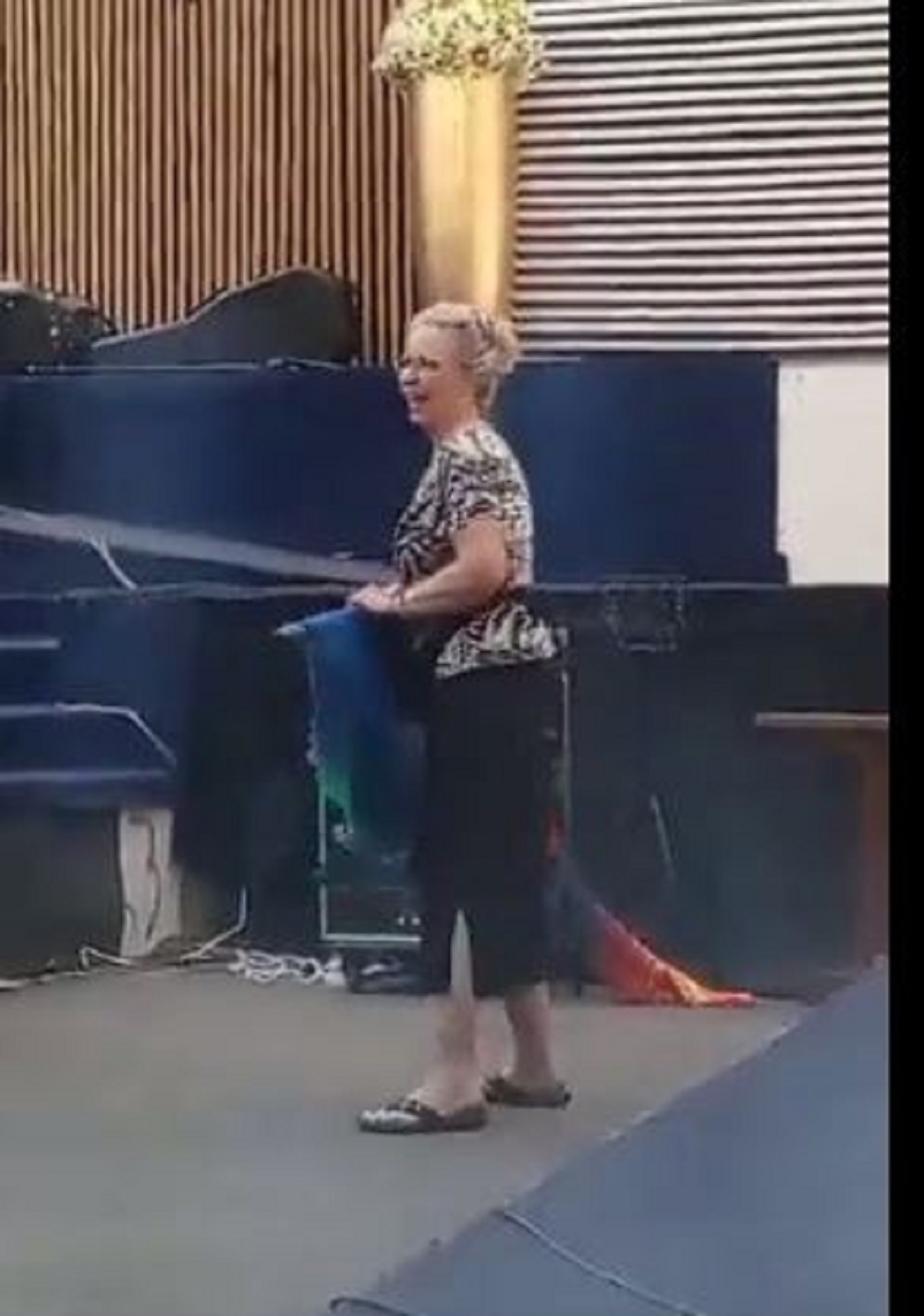 Pasiteri Ndayizeye yagaragaje ko uyu mugore wazunguzaga iri bendera ataryamana n’abo bahuje igitsina, ngo kuko mbere y’uko we na bagenzi be batumirwa mu Rwanda babanje kubigaho.