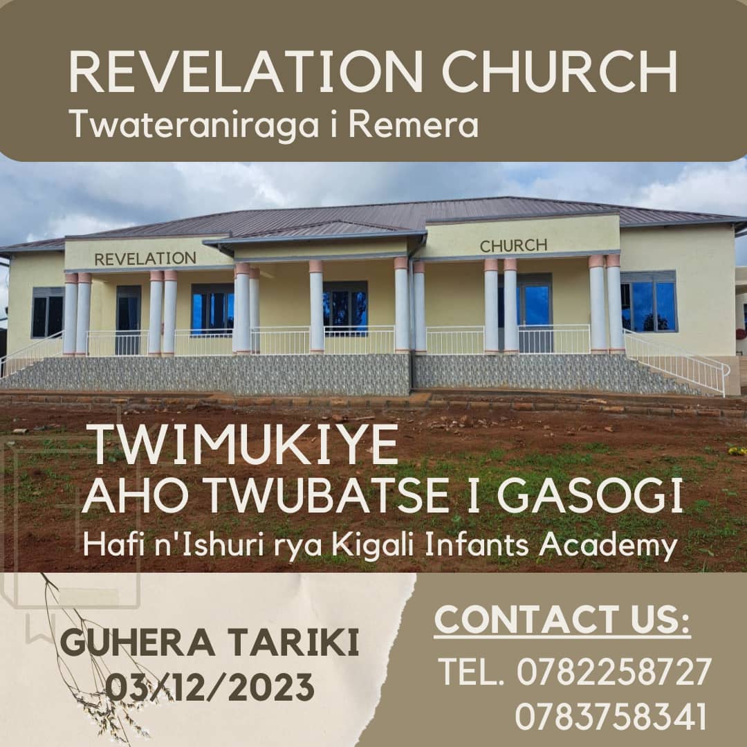 Itorero rya Revelation Church ryateraniraga ahitwa i Remera mu mujyi wa Kigali rigiye kwimukira mu nyubako yaryo i Gasogi hafi y’Ishuri rya Kigali Infants Academy guhera ku Cyumweru tariki 3 Ukuboza 2023.