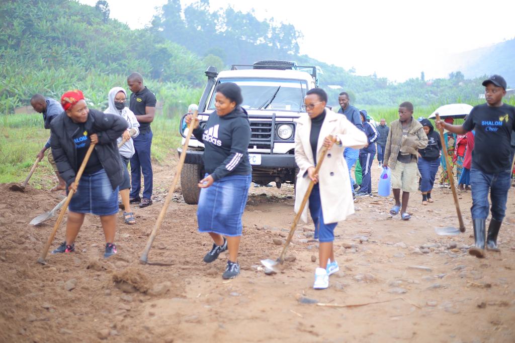 Aba baririmbyi b’i Kigali banifatanyije mu muganda n’abaturage b’ka Karere hamwe n’abayobozi bakuru barimo Minisitiri w’Ubutegetsi bw’Igihugu (MINALOC), Eng Jean Claude Musabyimana; PS w’Intara y’Uburengerazuba; Meya w’Akarere ka Nyabihu, Madamu Mukandayisenga ndetse n’Abayobozi bakuru b’Ingabo na Polisi.
