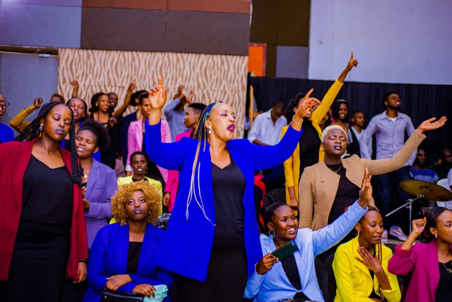 – Umunyamakuru Juliette Tumusiime niwe wari M.C w’igitaramo. Agifata Microphone, yasabye abantu bose guhaguruka bagafatanya gusenga batumira Mwuka Wera ngo abane nabo muri byose.