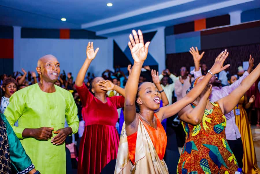 – Urusengero rwuzuye abantu mbere y’uko igiterane gitangira.
