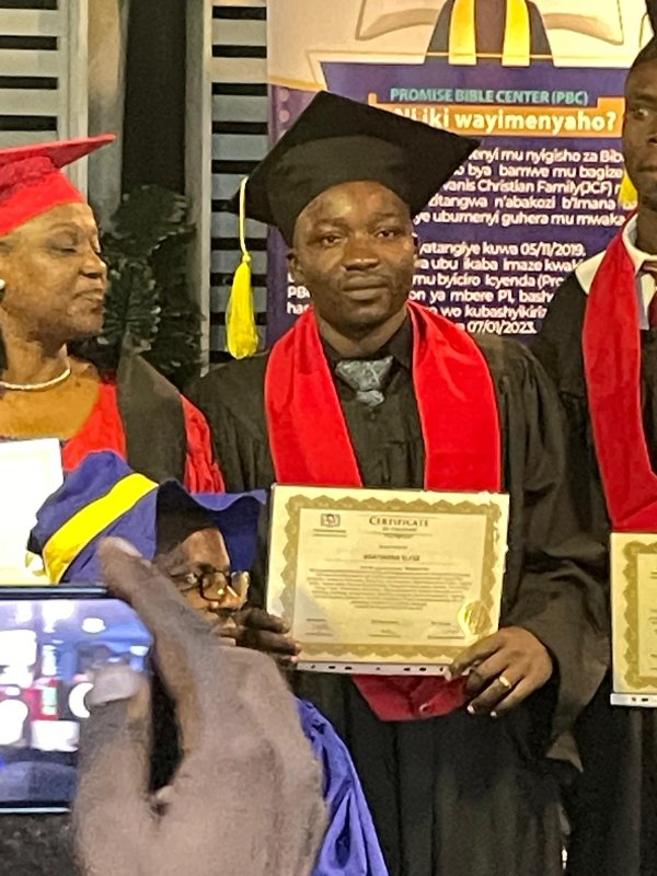 Nyuma y’imyaka ibiri, yatsinze ibizamini, ahabwa impamyabushobozi, Certificate, mu masomo ya Bibiliya, bituma arushaho kugira ubumenyi buhagije mu gusobanura neza Ijambo ry’Imana no kubigeza ku bantu mu buryo bwumvikana.
