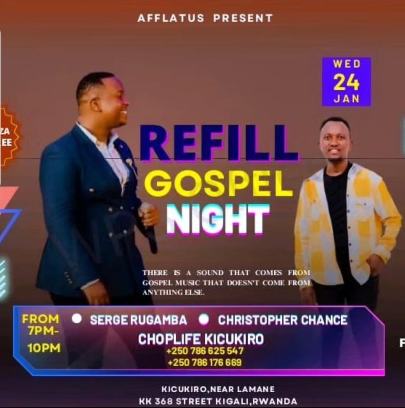 lyi Refill Gospel Night aba bombi bahuriyemo, izajya iba buri wa Gatatu, akarusho kwinjira ni ubuntu ndetse ugura Pizza imwe ukabona indi y’ubuntu mbese yari umugoroba udasanzwe.
