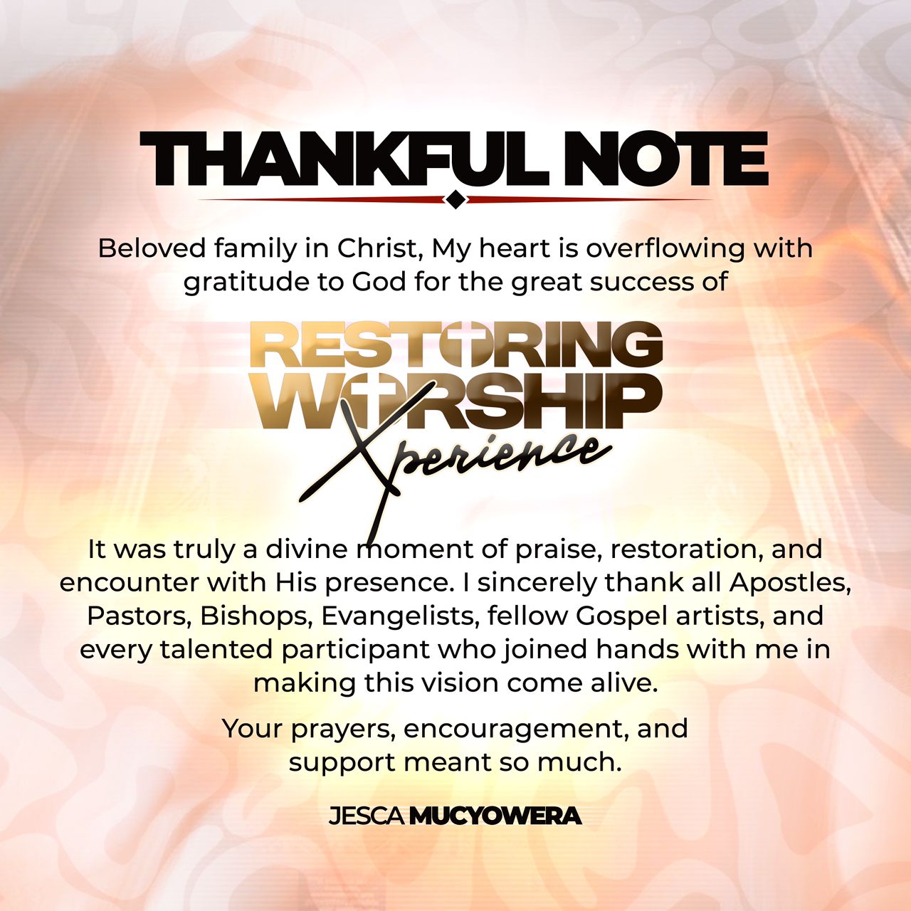 Byari ibyishimo bisendereye ku muramyi Jesca Mucyowera wahembuye abitabiriye igitaramo cye cya mbere yise "Restoring Worship Xperience" cyabereye muri Camp Kigali.