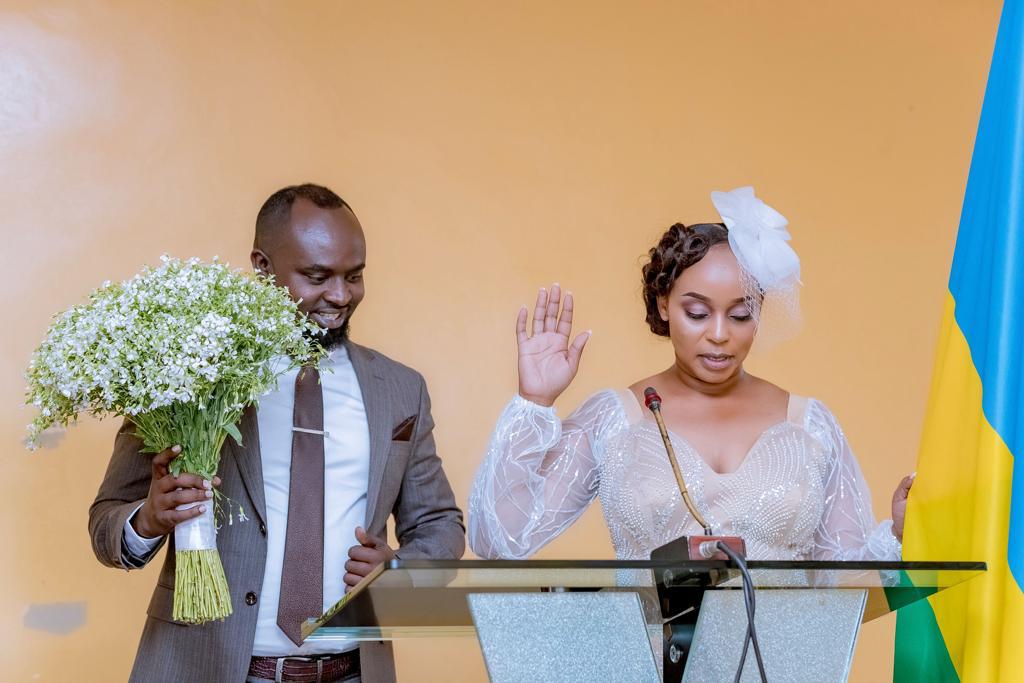 Mbere y’iminsi ibiri ngo basezerane imbere y’Imana mu birori biteye benshi amatsiko, aba bombi babanje gusezerana imbere y’amategeko ya Leta y’u Rwanda mu muhango wabaye kuri uyu wa Kane tariki 05/10/2023 ku Murenge wa Remera mu Karere ka Gasabo mu Mujyi wa Kigali.