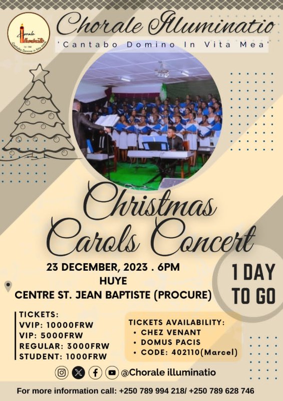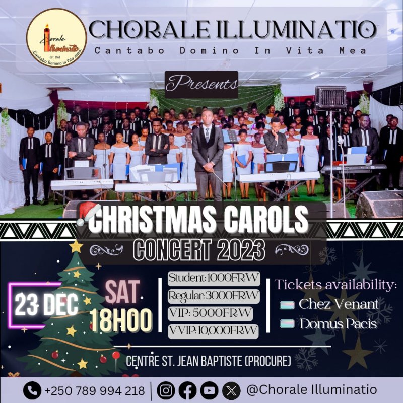 Chorale Illuminatio yateguye igiterane cy’amateka giteje benshi mpagarara kuri uyu wa 23 Ukuboza 2023. Iki gitaramo kizatangira saa kumi n’ebyiri, kuri procure imbere ya cathedral.