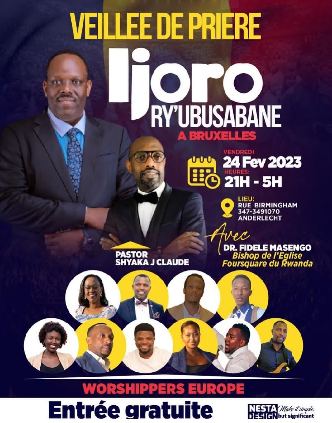 Mu ijoro ryo kuri uyu wa Gatanu mu Mujyi wa Bruxelles mu Bubiligi muri Eglise MICA, ni ubuntu bugeretse ku bundi kuko bari mu bihe bidasanzwe byo kuramya Imana no kumva ijambo ryayo hamwe n’abakozi b’Imana basizwe. Ni igikorwa kimara amasaha 9 kuva saa tatu z’ijoro z’uyu wa Gatanu kugeza mu rukerera rwo kuwa Gatandatu saa kumi n’ebyiri za mu gitondo.