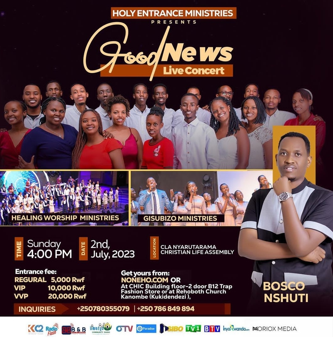Iki gitaramo cyiswe "Good News Live Concert" cya Holy Entrance Ministry giteganyijwe kuri iki cyumweru le 02/07/2023 guhera Saa Munani mu rusengero rwa Christian Life Assembly ruherereye i Nyarutarama.