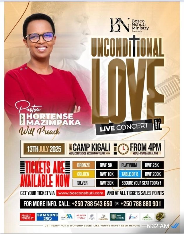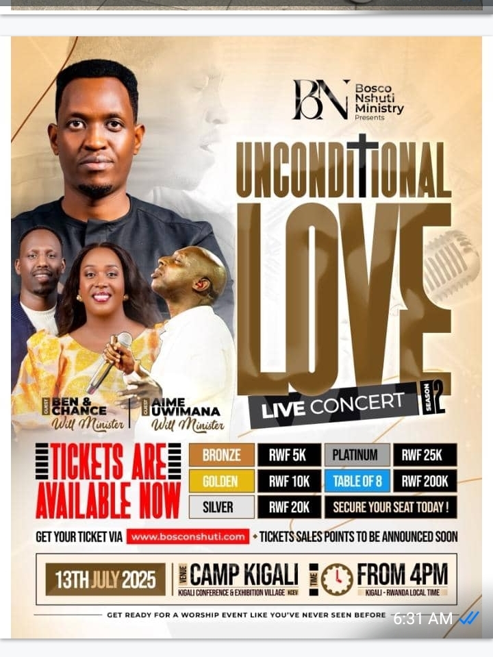 Mu gitaramo "Unconditional love live concert kizaba kuwa 13 Nyakanga 2025 muri Camp Kigali byitezwe ko ari kimwe mu bitaramo bizaba bihenze binateguye ku rwego rwo hejuru. Ibi birasaba abakunzi ba Gospel kuzashyigikira uyu muramyi urimo gukorana imbaraga zidasanzwe.