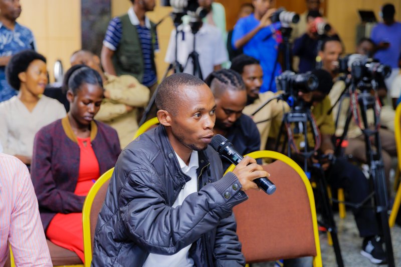 Bosco Nshuti wagaragazaga akanyamuneza mu maso yasubije ibibazo bitandukanye afatanyije n’ikipe y’abamufasha gutegura iki gitaramo irimo Jean Luc Rukundo -[Coordinator], Peace Nicodem [Vice Coordinator] na Josue Shimwe [Technique].