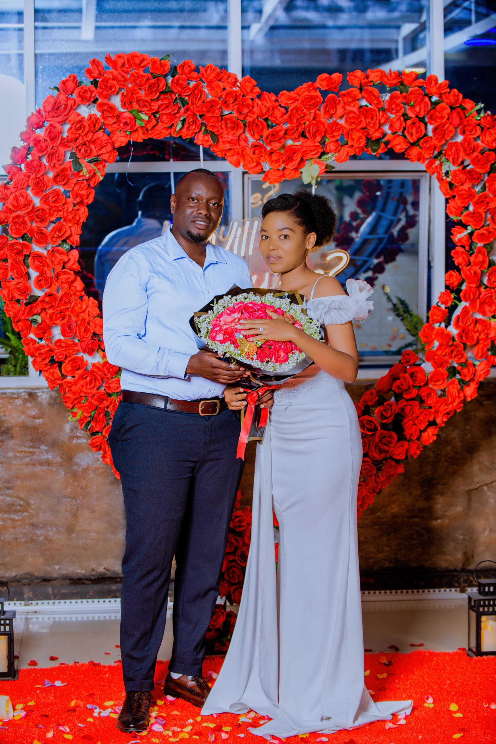 Uyu munsi wabanjirije ibirori by’isabukuru y’amavuko by’uyu mwali dore ko yavutse kuwa 03/09 wari umunsi w’akataraboneka! Uretse gukata umutsima, uyu musore yasabye Vumilia kuzamubera umugore, ntiyatinze mu ikona mu gusubiza ati: "Yes". Umusore yahise amwambika impeta.