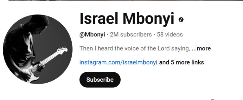 Umuhanzi w’icyamamare mu muziki wo kuramya mu Rwanda, Israel Mbonyi, yageze ku ntsinzi ikomeye kuri YouTube ubwo urubuga rwe rwageraga ku barukurikira barenga miliyoni ebyiri.