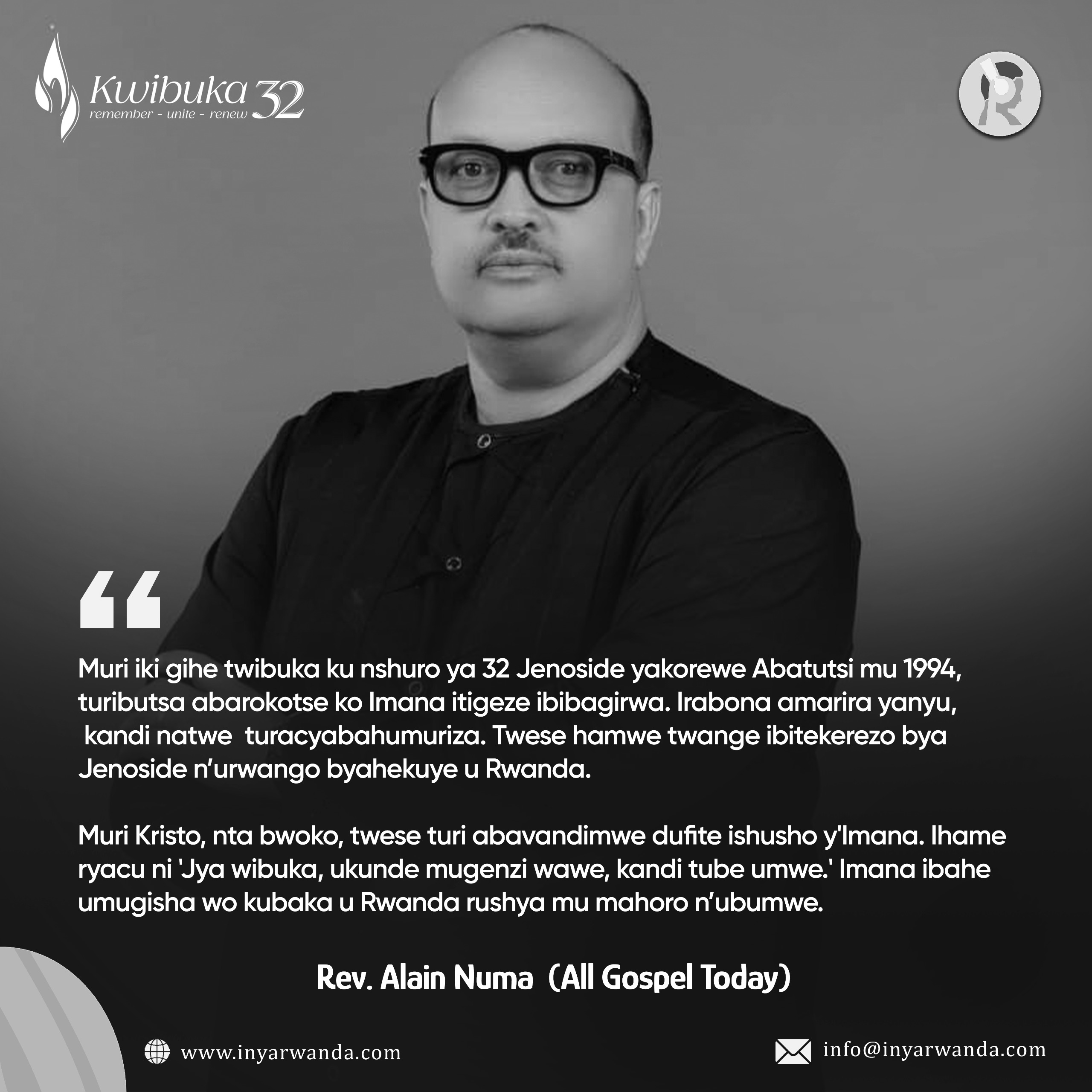 Mu gihe u Rwanda n’isi yose bakomeje kwibuka no kunamira inzirakarengane zirenga miriyoni bishwe urupfu rw’agashinyaguro bazize Jenoside yakorewe Abatutsi muri Mata 1994, Rev Alain Numa yatanze ubutumwa bushishikariza abantu kuba umwe anahumuriza abarokotse Jenoside yakorewe Abatutsi mu 1994.