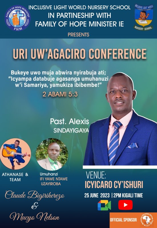 Inclusive Light World Nursery School ku bufatanye na Family Hope Ministries, bazanye ku nshuro ya kabiri igiterane "URI UW’AGACIRO CONFERENCE" kizaba gifite Insanganyamatsiko iboneka mu gitabo cya 2Abami 5:3.