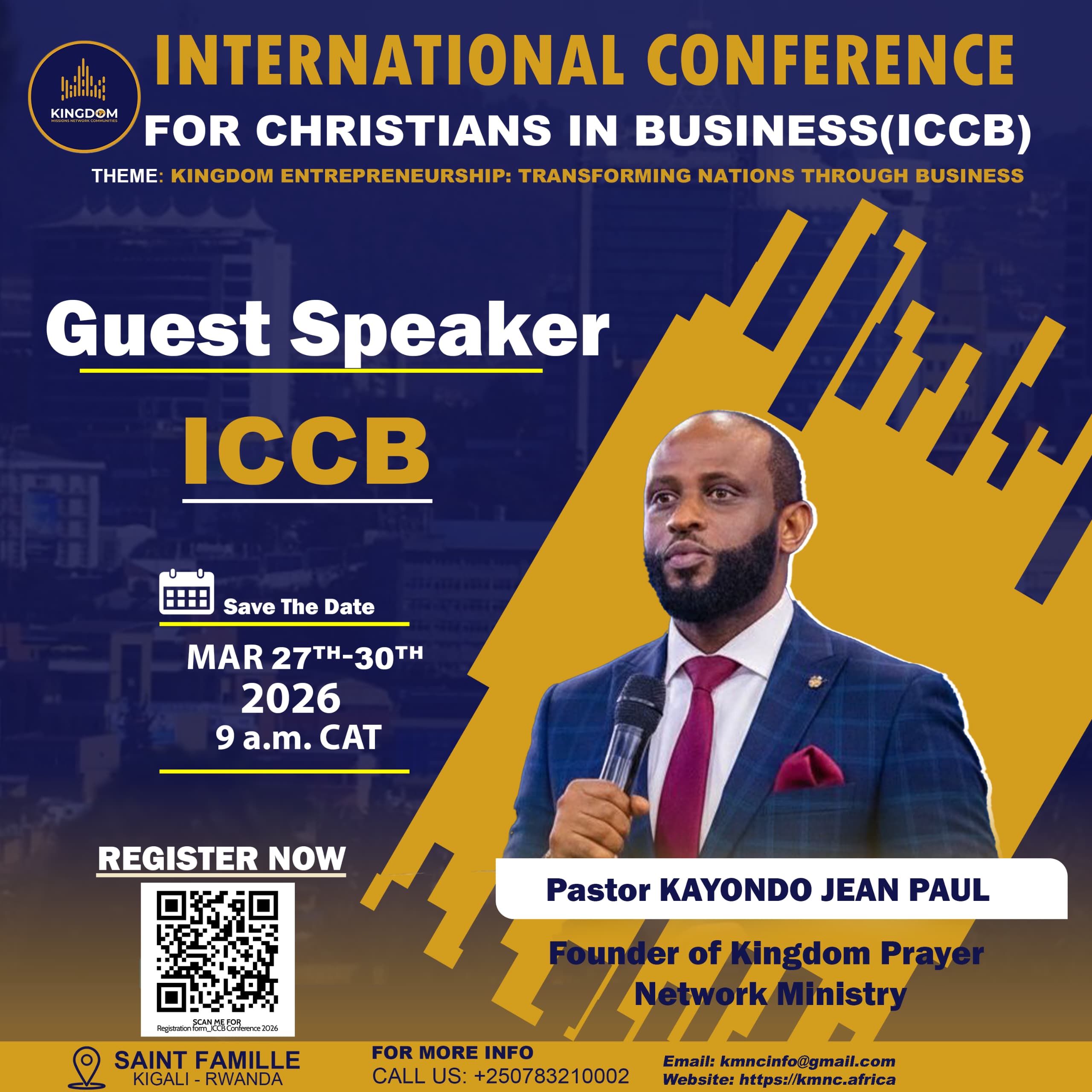 Iri huriro ryitwa International Conference for Christians in Business. Ni ihuriro mpuzamahanga rigamije guhuza, guha ubushobozi no gukangurira Abakirisitu bakora mu bucuruzi n’imirimo itandukanye gukoresha ibyo bakora nk’inzira yo guteza imbere Ubwami bw’Imana. Riteganyijwe guhuza abazaba bitabiriye baturutse muri Afurika ndetse no mu bindi bihugu byo ku isi.