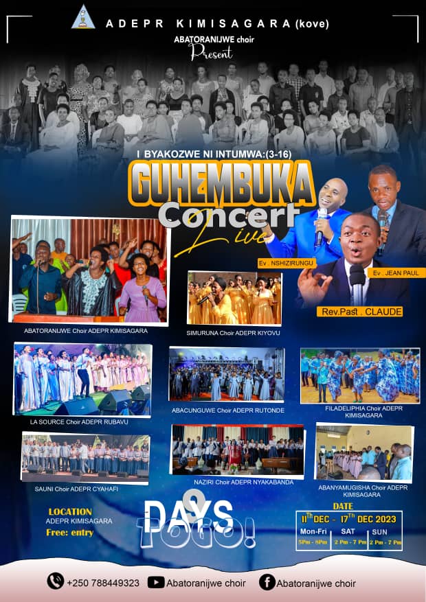Kuwa Gatandatu ku wa 16 Ukuboza na tariki 17 Ukuboza 2023 haje La Source Choir guturuka i Rubavu ndetse n’umuvugabutumwa Nshizirungu nawe arakomeza kuri iki cyumweru ku munsi wo gusoza.