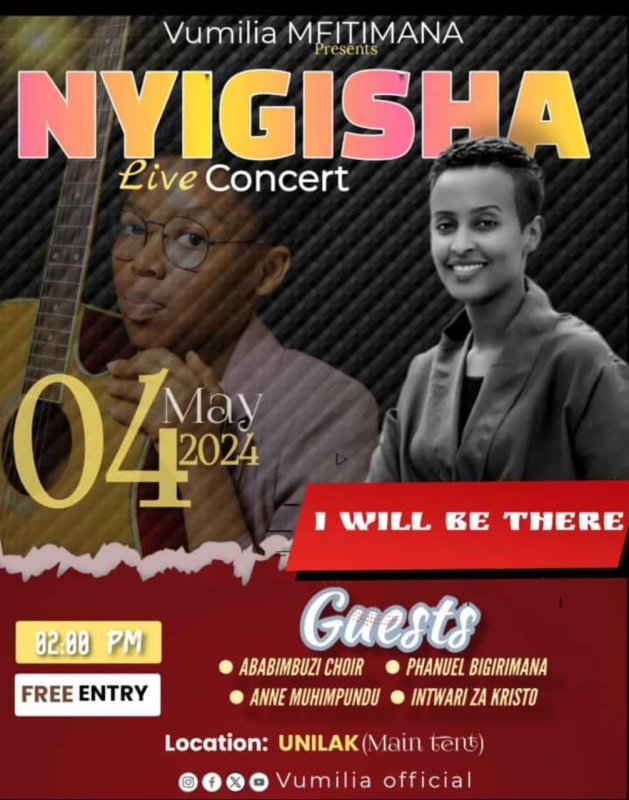 Mwimbaji wa Kanisa la Waadventista Wasabato, Vumilia Mfitimana yuko katika hatua za mwisho za maandalizi ya tamasha lake la kwanza linaloitwa ’Nyigisha Live Concert’, litakalofanyika kwenye hema kuu la UNILAK Mei 4, 2024 (Leo).