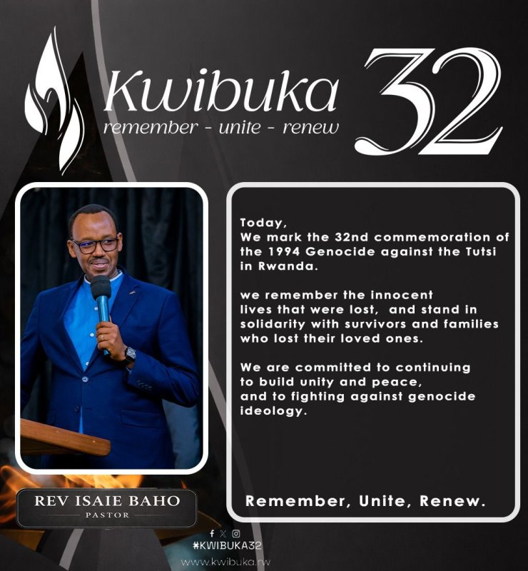 Mu gihe u Rwanda ruri mu Cyumweru cy’Icyunamo cyo Kwibuka ku nshuro ya 32 Jenoside yakorewe Abatutsi mu 1994, gitangira ku wa 7 kugeza ku wa 13 Mata 2026, Rev. Baho Isaie yatanze ubutumwa bukangurira Abanyarwanda gukomeza kwibuka baniyubaka, no guharanira ubumwe n’amahoro arambye.