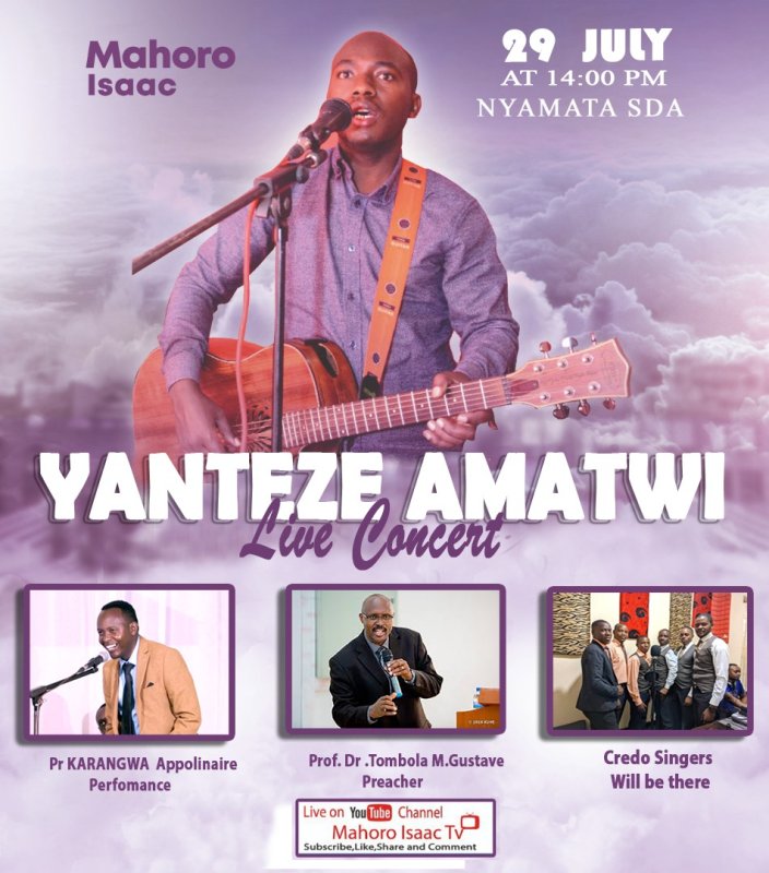 Mahoro Isaac yateguye igitaramo gikomeye gitiriye indirimbo aheruka gushyira hanze yitwa "Yanteze amatwi". Muri iki gitaramo azaba ari kumwe na Pastor Karangwa Appolinaire, Prof. Dr. Tombola M. Gustave na Credo Singers. Kwinjira ni ubuntu.