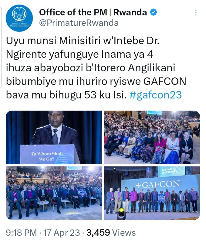 Mu Rwanda hari kubera inama ya kane y’abayobozi b’Itorero Angilikani bibumbiye muri GAFCON.