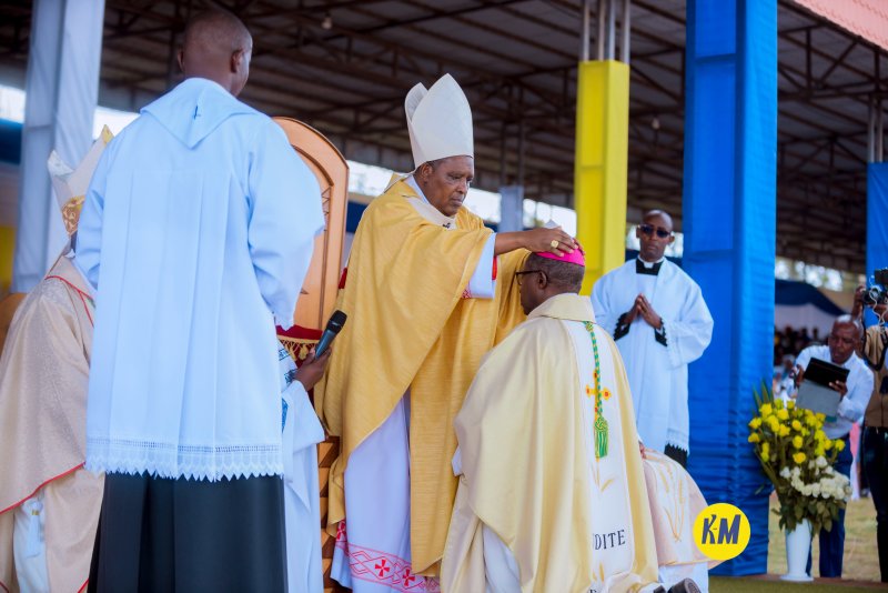 Umwepiskopi wacyuye igihe wa Diyosezi ya Goma, muri Repubulika Iharanira Demokarasi ya Kongo,Myr Faustin Ngabu, hamwe n’abasaseridoti baturutse muri iyi diyosezi bitabiriye umuhango wo kwimika umwepiskopi mushya wa Kibungo.
