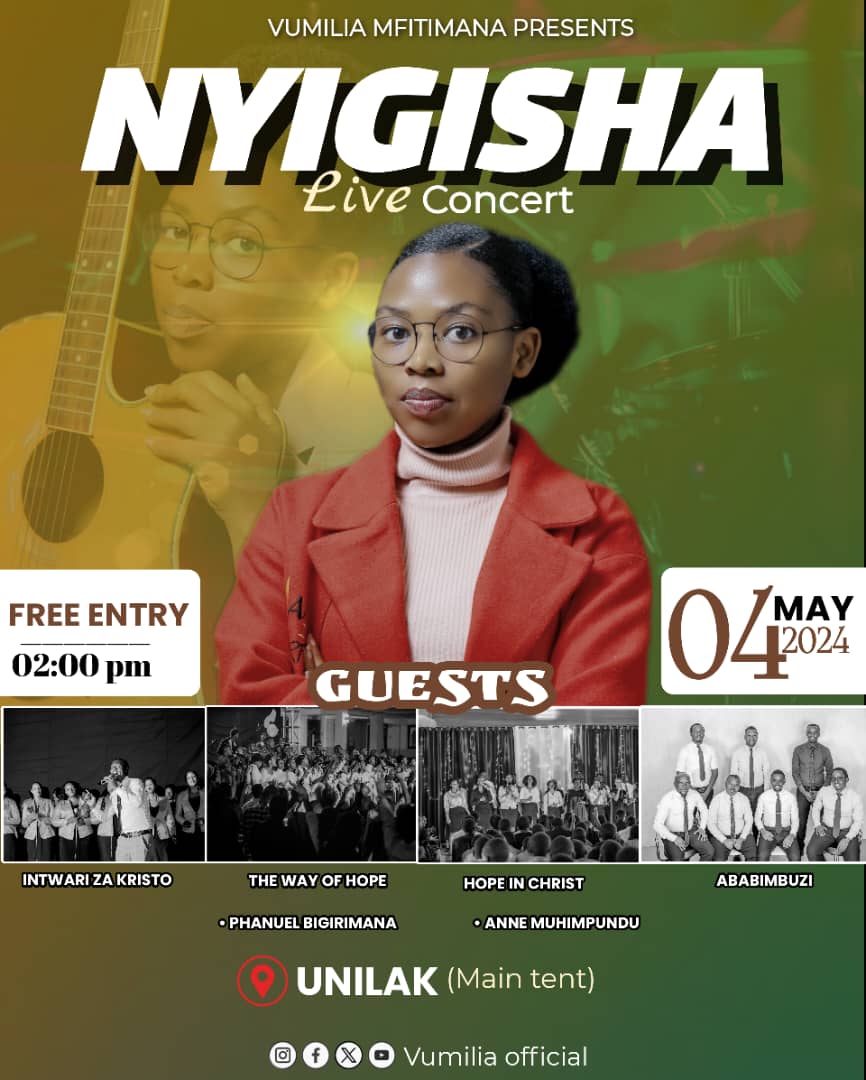 Nguwo Vumilia Mfimana witeguye kumurikira abakunzi be batabarika ubutumwa amaranye iminsi mu gitaramo cyiswe "Nyigisha Live Concert" giteganyijwe ku Isabato yo kuwa 04/05/2024.