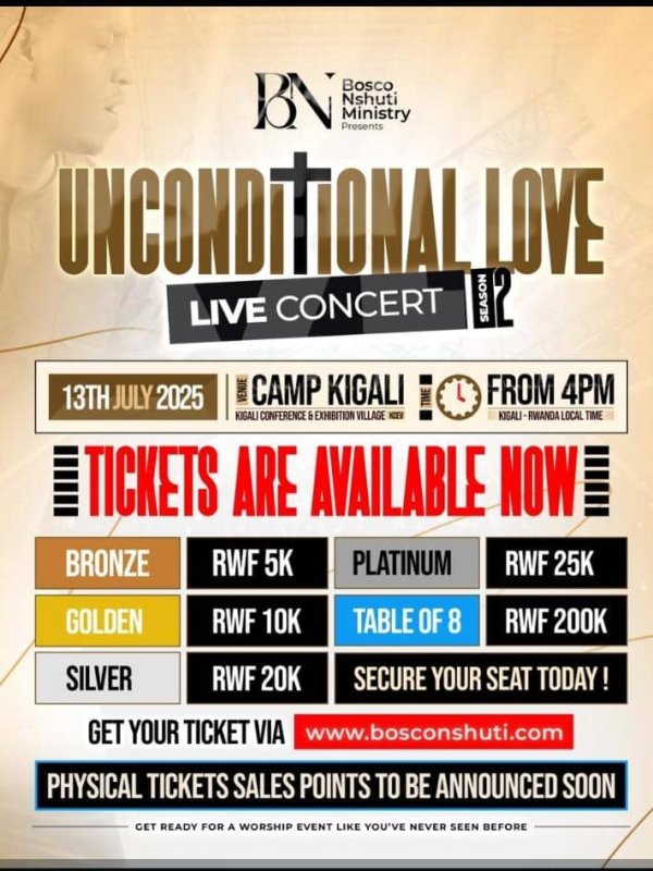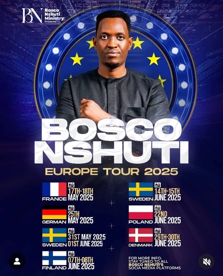 Nyuma y’uru rugendo rw’ubutumwa bwiza ku mugabane w’u Burayi, Bosco Nshuti azagaruka mu Rwanda aho ategerejwe mu gitaramo gikomeye yise “Unconditional Love”, giteganyijwe ku itariki ya 13 Nyakanga 2025.