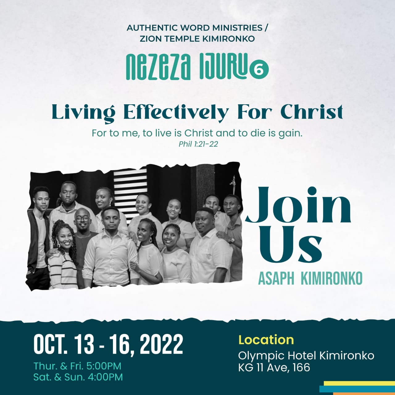 Iki giterane gifite intego igira iti "Living effectively for Chirst" [Beraho Kristo Neza, Ntumukoze Isoni]. Cyatangiye kuri uyu wa Kane, kizamara iminsi 4, kikaba kizasoza ku cyumweru kuwa 16/10 2022