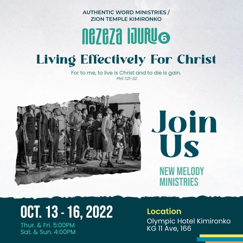 Abakozi b’Imana batandundukanye kandi bafite ijambo bazaba babucyereye abo barimo nka Rev.Dr Antoine Rutayisire, Pastor Senga Emmanuel n’abandi benshi....Aba bose bazakirwa n’umushumba mukuru wa Zion Temple Kimirongo Parish, Pastor Didier Habimana, umugaragu w’Imana usizwe cyane.