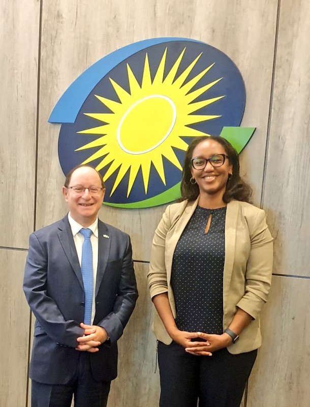Ambasaderi wa Israel mu Rwanda, Dr. Ron Adam ndetse n’Umuyobozi Mukuru wa RwandAir, Madamu Yvonne Makolo, baganiriye ku guteza imbere ubukerarugendo hagati y’ibihugu byombi ndetse banaganira ku bijyanye no kuba RwandAir yakorera ingendo muri Israel.