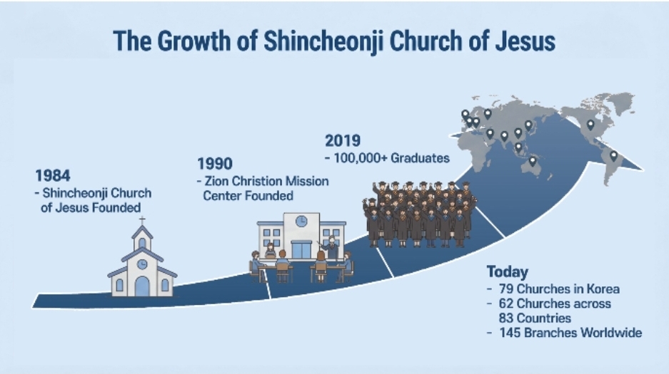 Umwaka ushize, Abantu 59.192 barangije mu ishuri rya 116 ry’ikigo Zion Christian Mission Center bateraniye mu Ishami rya Cheongju rya Shincheonji Itorero rya Yesu. Umubare utari muto muri bo ni abahawe impamyabumenyi bo mu bindi bihugu, berekana ko ubutumwa bwiza bw’Ibyahishuwe buri gusakara isi.