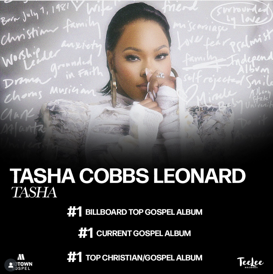 Umuririmbyi wa Gospel wahawe ibihembo bya Grammy, Tasha Cobbs Leonard, yongeye kwandika amateka nyuma yo kugira album ye ya gatandatu igera ku mwanya wa mbere ku rutonde rwa Billboard Top Gospel Albums binyuze kuri album ye ya mbere ya studio yise Tasha.