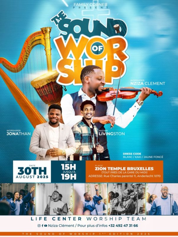 Family Corner continues to organize worship events focused on healing and restoring families. Before the arrival of Tonzi and Bosco Nshuti, another concert called The Sound of Worship will take place on August 30, 2025 at Zion Temple, Brussels, featuring Nziza Clement, Jonathan, and Pastor Livingston.
