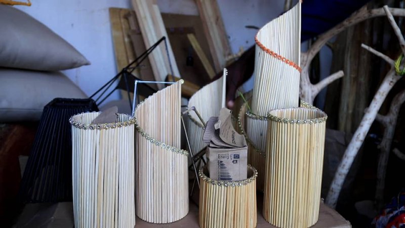 Tuyisenge Cassien w’imyaka 29 y’amavuko wo mu Murenge wa Kibungo, Akarere ka Ngoma akora imitako itandukanye mu duti tw’imishito twavuyeho mushikake, akazi yahanze nyuma y’uko ako yakoraga gahagaze kubera COVID-19.
