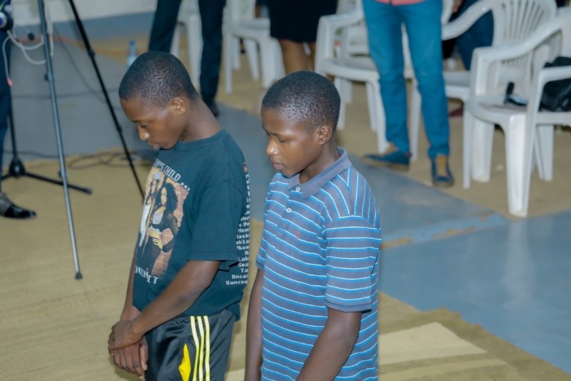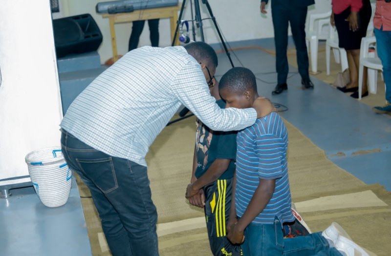 Pastor Arsene na Pastor Nsabimana Sylvin bakaba nabo bifatanyije n’aba banyeshuli mu kubagaburira amata y’umwuka adafunguye.