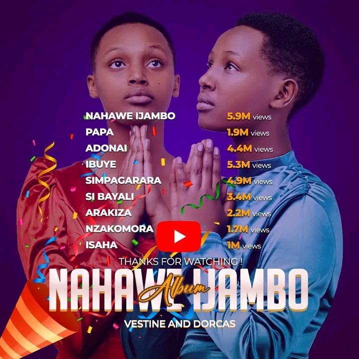 1.Igikundiro aba baririmbyi basanganywe: Kuvuga Vestine na Dorcas muri Gospel ni nko kuvuga equipe ya Rayon Sports ku bakunzi ba ruhago. Kuva ku ndirimbo ya mbere "Nahawe Ijambo" kugeza ku ndirimbo ya cyenda ariyo "Isaha", ni indirimbo zarebwe cyane, ziririmbwa n’abatari bacyeya, zigishwa mu mashuri nka mpara ya 2, ndetse kuri YouTube ntayarebwe n’abantu bari munsi ya miliyoni.