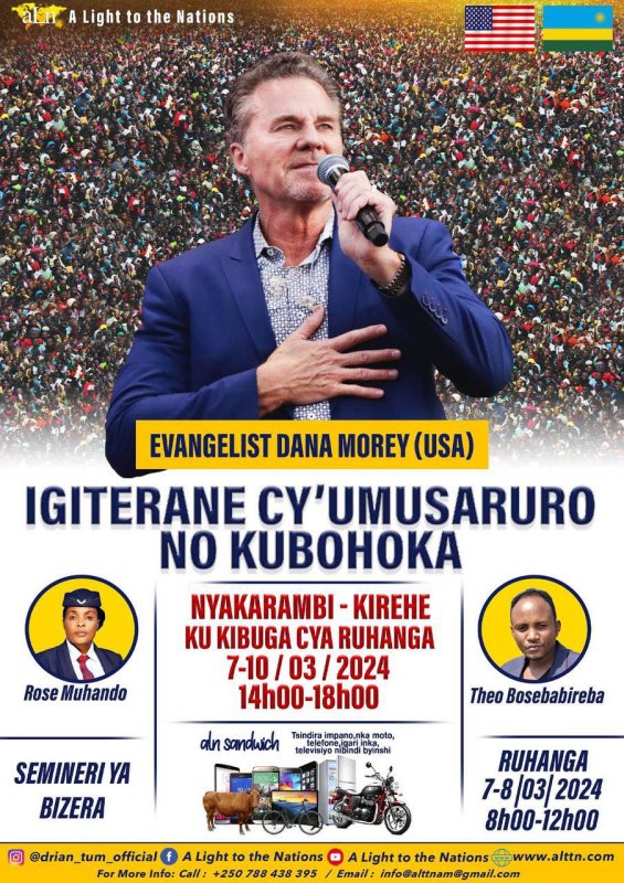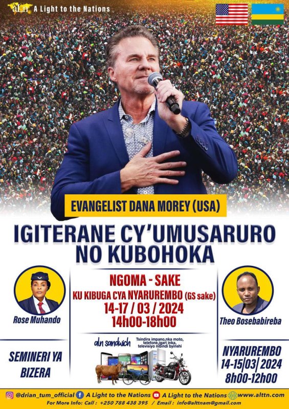 Mkutano huo wa Production na Uhuru utakaofanyika Machi 7-10, 2024, utahudhuriwa na wasanii maarufu akiwemo Mtanzania Rose Muhando na Theo Bosebabireba, utakaofanyika Kibuga Ruhanga. Baada ya Kirehe, mkutano huu utafanyika katika Wilaya ya Ngoma huko Sake Machi 14-17, 2024.