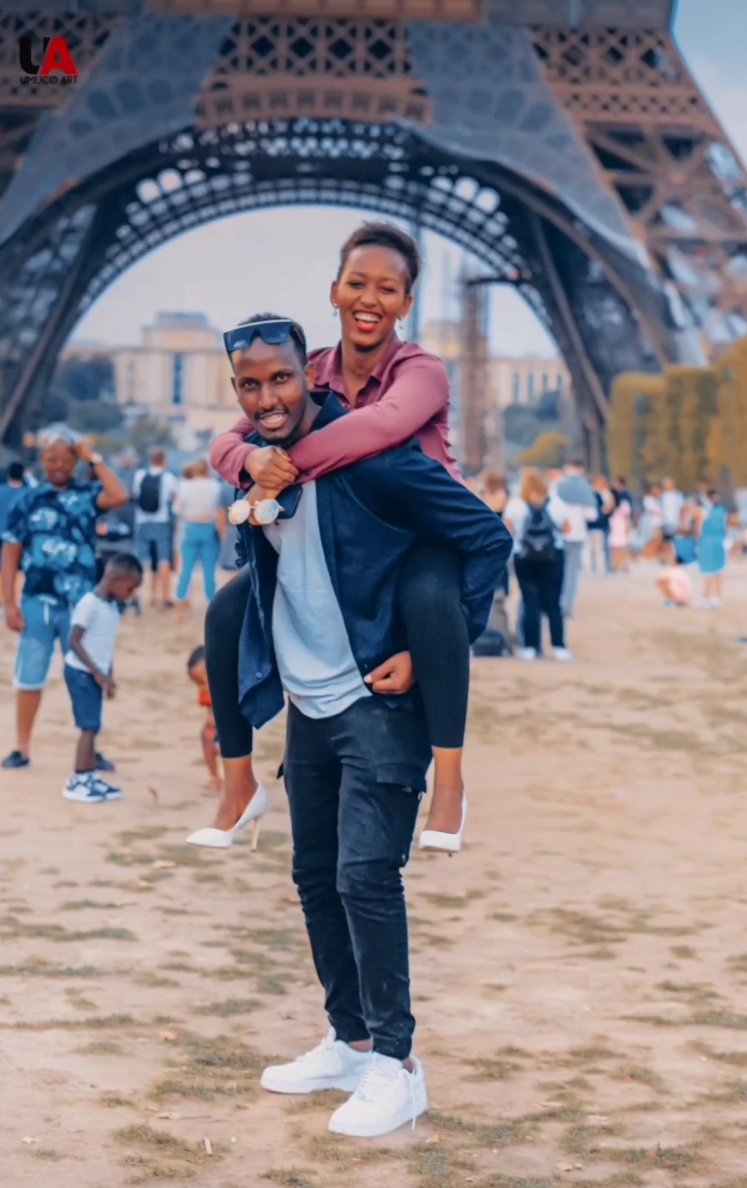 Gentil Misigaro na Rhoda Mugiraneza, basanzwe batuye muri Canada, basanze nta handi bakwizihiriza ibirori by’isabukuru y’imyaka 4 bamaranye mu rushako ngo baryoherwe cyane, hatari mu Bufaransa kuri uyu munara w’agatangaza wubatswe hagati ya 1887 na 1889.