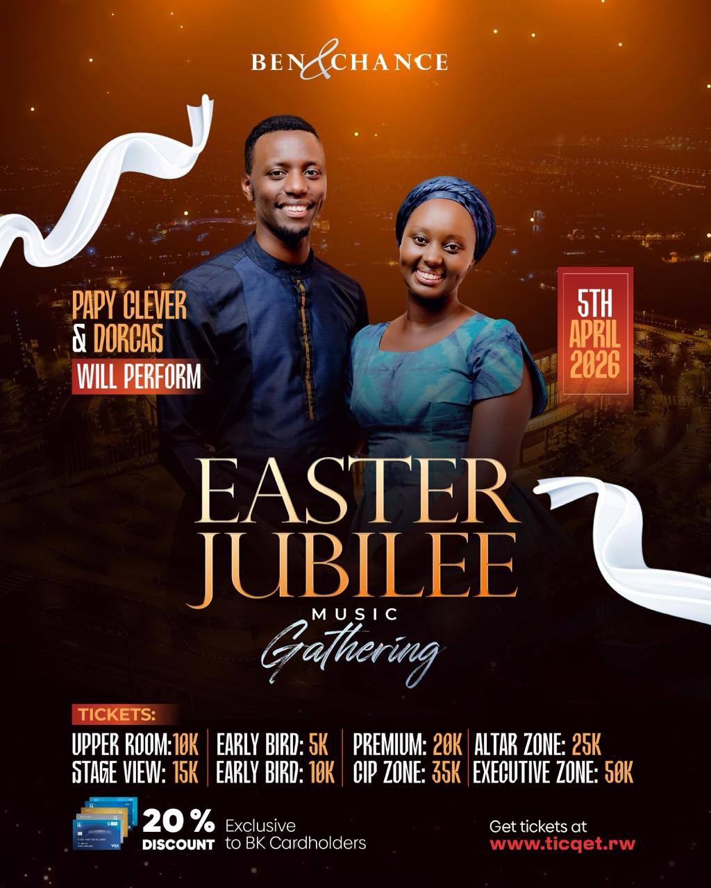 Nshuti z’umusaraba mwitegure igitaramo cyiswe "Easter Jubilee Music Gathering"cya Ben na Chance bafatwa nk’ikitegerezo cy’imirimo myiza dore ko bihanganiye inzira y’umusaraba banyuzemo mu muhamagaro wabo bakomeza kwihangana kugira ngo bazasingire icyo Kristo yabafatiye nk’uko Yobu yabivuze neza mu gice cya 23:10 hagira hati "Ariko izi inzira nyuramo, Nimara kungerageza nzavamo meze nk’izahabu."