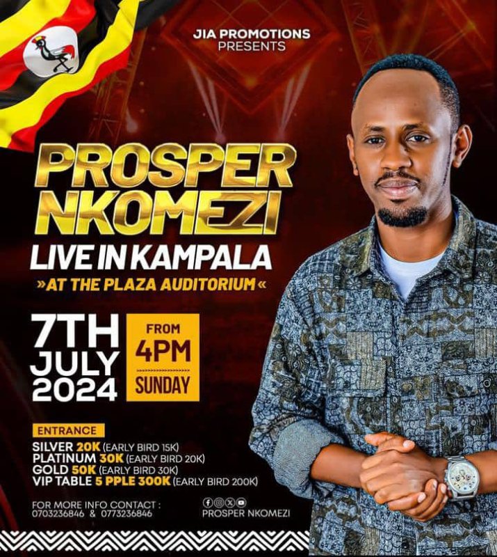 Prosper Nkomezi’s concert will take place on July 7, 2024, in Uganda, in the capital Kampala, at The Plaza Auditorium.
